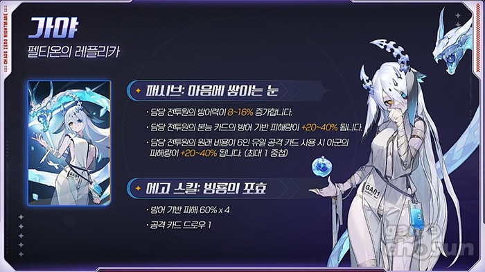 방어 기반 피해를 주는 전투원을 위한 방어력 상승, 본능 카드의 방어 기반 피해량 증가, 6코스트 카드 사용 시 아군의 피해량 증가 버프까지, 패시브 3종이 모두 '나르쟈'를 겨냥한 점이 눈에 띕니다.