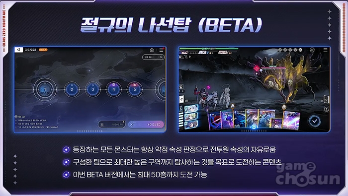이번 베타 버전에서는 우선 50층까지만 선공개될 예정이며, 전투원 제한은 없지만 '왜곡 효과'가 존재하는데, 이 효과는 특정 전투원을 우대하기 위함이 아니라 오히려 특정 전투원들의 부족한 점을 보완하기 위한 방향으로 설정했다고 언급했습니다.