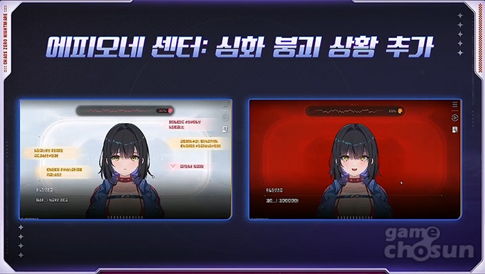 마지막으로 '에피오네 센터'에 심화 붕괴 상황이 추가되어 현재 전투원의 심리 상태에 조금 더 몰입할 수 있도록 개선됩니다. 단, 심화 붕괴 상태에 빠져도 심리 상담에 실패하는 것은 아니고 카오스 정화 장치를 통해 회복할 수 있습니다.