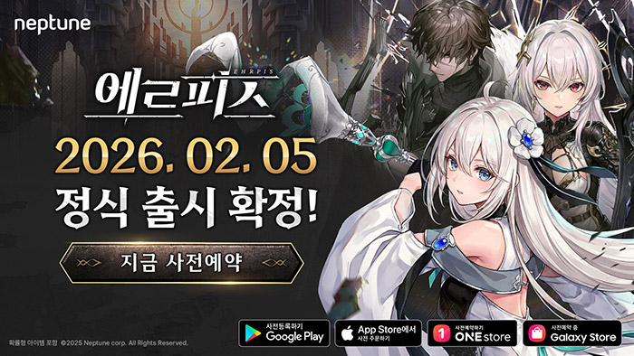 [자료제공 = 넵튠] 넵튠(대표 강율빈)이 지난 해 7월 퍼블리싱 계약을 체결한 비주얼 스쿼드 RPG ‘에르피스’의 국내 출시일을 2월 5일로 확정했다.