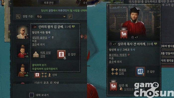 역사를 다루는 게임이라면 늘 그러하듯 고증 문제도 꼬리표처럼 따라다니죠. 크루세이더 킹즈는 사료가 아닌 놀이를 위한 도구인 만큼 재미를 위해 게임적 허용과 생략을 시도하게 되는데 이 과정에서 가끔씩 몰입감을 해치는 요소들이 등장하곤 합니다. 바로 위에서 살펴본 '김 궁예'나 '견 아자개' 같은 부분이 그러하죠. 역사 고증에 민감한 분이라면 꽤 거슬릴 요소가 될 것 같습니다.