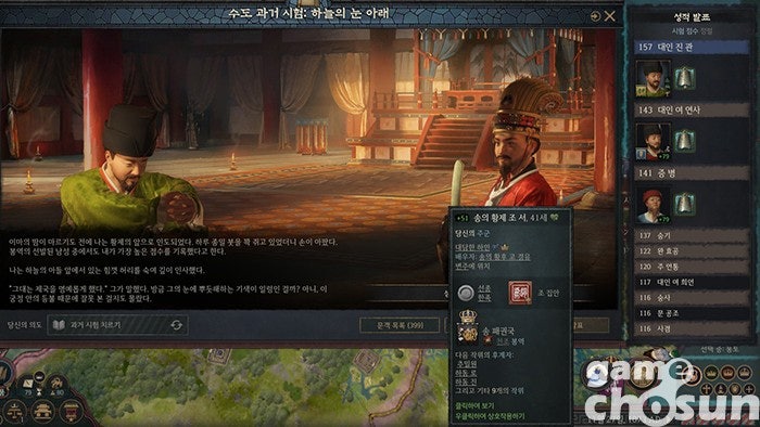튜토리얼로 확인할 수 있는 아시아의 사회는 꽤나 그럴듯했습니다. 방랑기사처럼 모험하던 비지주 플레이를 손봐 과거 시험에 합격하고 명성을 드높여 직위에 오르는 시스템엔 꽤 감탄했습니다. 이렇게 직위에 올라 특정 지역의 관리로 임명되어 행정 업무를 보는 방식은 우리가 익히 아는 입신양명 그 자체라 자연스럽게 몰입할 수 있었죠.