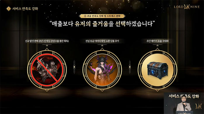 로드나인은 서비스 만족도 강화를 위한 세 가지 약속을 내걸었다. 먼저 서비스 안정화를 최우선 과제로 삼고, 불가피한 점검 발생 시 보상 기준을 전면 상향하기로 했다. 보상 아이템에는 ‘아바타 소환권’과 ‘승급서’ 등 실질적인 성장에 도움을 주는 아이템들이 대거 포함된다.