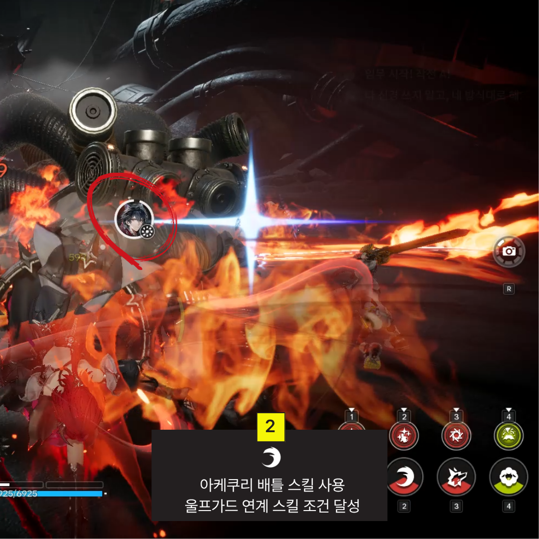 아케쿠리는 배틀 스킬을 사용할 때마다 1회의 열기 부착이 확정이고 아츠 부착을 조건부로 발동하는 울프가드의 연계스킬도 열기 부착 1회가 확정이라서 스킬 게이지 1개만으로 2회 분의 열기 부착을 채울 수 있으며 울프가드의 연계 스킬 쿨타임은 레바테인이 가진 불꽃의 심장 버프와 동일한 20초라서 쿨타임 정렬도 편하고 로스타임도 거의 없어 편의성이 꽤 높습니다.