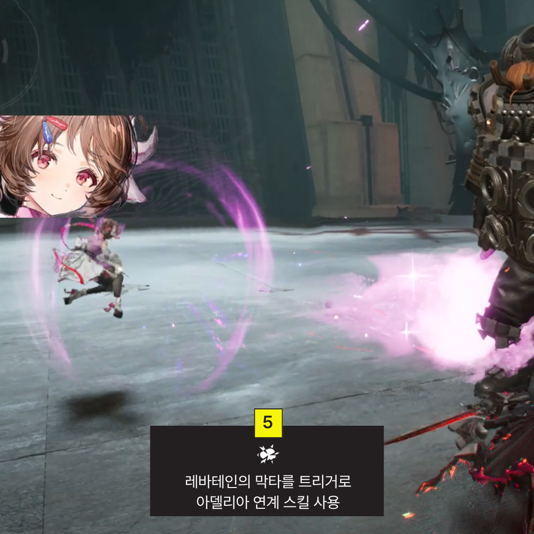 아델리아는 연계 스킬을 걸어 부식을 부착하고 이를 배틀 스킬로 소모하여 30초간 적에게 피해 증폭을 거는 아츠 취약을 걸 수 있는데요. 아델리아의 연계 스킬 발동 조건이 아츠 미부착 상태의 적에게 강력한 일격을 적중시키는 것이라서 평타 막타를 때릴 때마다 열기 부착을 지워버리는 레바테인의 메커니즘과 정확히 맞아떨어져서 쉽게 쓸 수 있습니다. 이쪽도 연계 스킬의 쿨타임이 18초라 역시 정렬 운용이 간편하기도 하고 정식 출시 프로모션으로 일단 명함이 확정 지급이라 접근성도 좋죠.