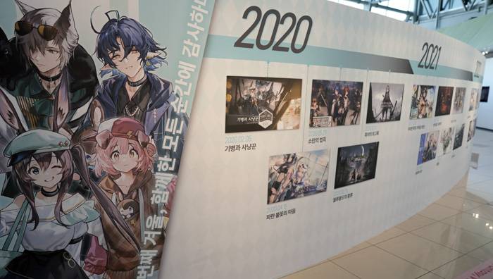 현장에서는 일상복으로 갈아입은 '트라고디아', '아미야', '골든글로우', '루멘' 외에도 최근 업데이트된 '폐허' 사이드 스토리 이벤트의 배경인 극동과 '돌아오지 않는 불꽃' 특별 헤드헌팅의 픽업 대상으로 지정된 '호시구마 더 브리처', '하루카'의 테마로 꾸며진 공간을 만나볼 수 있다.