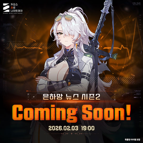 한편, '카오스 제로 나이트메어'는 오는 1월 30일 글로벌 론칭 100일을 기념해 매일 게임 내 우편을 통해 핵심 재화를 지급하는 특별 선물 이벤트를 진행 중입니다. 또, 2월 4일에는 '은하계 재해 시즌2' 대규모 업데이트를 통해 세이브 데이터 규칙 개선 등 로그라이크 본연의 맛을 살리기 위한 콘텐츠 개편, 밸런스 조정 외 시즌2 다양한 신규 콘텐츠를 선보일 예정입니다.