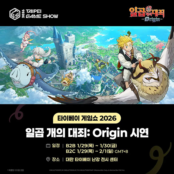 넷마블의 초대형 오픈월드 액션 RPG '일곱 개의 대죄: 오리진'이 2026 타이베이 게임쇼(TGS 2026)에 참가해 대만 현지 팬들과의 접점 확대에 나섰다.