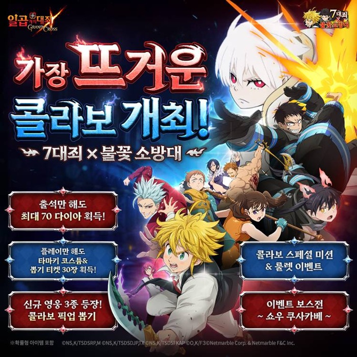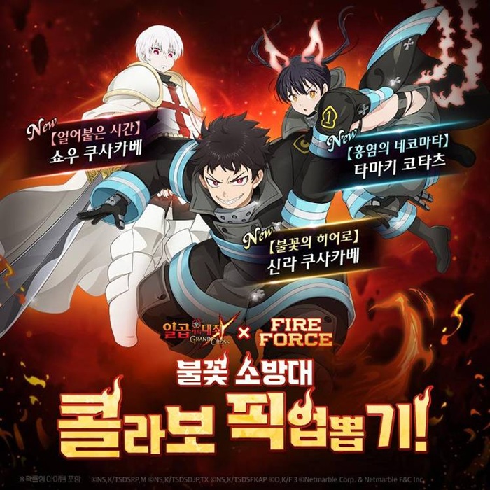 넷마블 인기 모바일 RPG '일곱 개의 대죄:그랜드 크로스'가 '소울 이터'로 유명한 오쿠보 아츠시의 '불꽃 소방대'와 콜라보레이션을 진행한다.