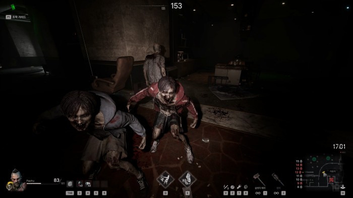 또 하나는 플레이어 간의 교전 속에서 좀비를 적극 활용 가능하게끔 하기 위한 장치로 활용했습니다. PvP가 발생한 상황에서 주변 좀비를 끌여들여 다양한 경우의 수가 발생하게 유도할 수 있습니다.