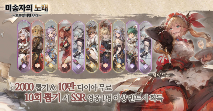 캐릭터 획득 방식도 문턱을 낮췄다. 미송자의 노래 뽑기는 10회 당 SSR 캐릭터를 확정 제공하며, 신규 게이머는 각종 콘텐츠를 통해 최대 2,000회 뽑기와 10만 다이아를 획득해 수많은 캐릭터를 획득할 수 있다.