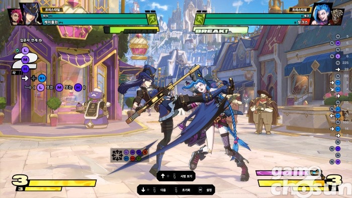 게이머가 원한다면 퓨즈를 통해 1 대 2 플레이도 가능하다대전 액션 면에서 콘텐츠를 살펴보면 최근 출시된 대전 액션 게임들이 다 그러하듯 2XKO에도 도입된 초심자를 돕는 시스템 '파동 연계'가 눈에 띕니다. 파동 연계는 약공격이나 중공격, 강공격 하나만 연속으로 눌러도 필살기까지 알아서 콤보를 넣어주는 시스템입니다. 물론 이 상태에서도 직접 커맨드를 입력해 콤보를 넣을 수 있고요. 다른 게이머와 대전할 때도 사용할 수 있어 대전 액션 게임에 서툰 게이머나 적응이 필요한 초반에 요긴하게 사용할 수 있습니다.