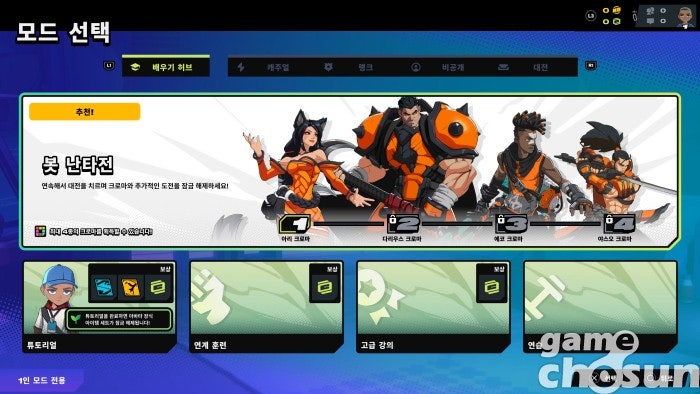 콤보 루트가 경직된 것이 단점이지만, 입문용으론 이만한 것이 없다리그 오브 레전드의 파생 작품이자 대전 액션 게임으로서 완성도는 나름 괜찮은 편이지만, 전반적인 '게임'으로서 분량은 다소 아쉽습니다. 게이머가 선택할 수 있는 모드는 튜토리얼 느낌의 '배우기 허브', 그리고 다른 게이머와 겨루는 '캐주얼', '랭크', '비공개', '대전'입니다. 그 흔한 스토리 모드는 찾아볼 수 없고, 아케이드 모드도 부실해 혼자 즐기는 게이머 입장에선 많이 심심한 편입니다.