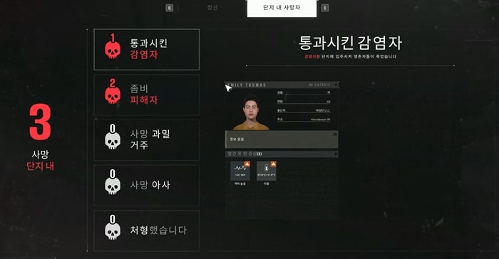 물론 다양한 검사 장비가 제공됨과 동시에 감염 여부를 체크하기 위한 항목이 다양해지기 때문에 난이도는 점차 높아집니다. 따라서 플레이어는 좀비를 걸러내기 위해 더욱 꼼꼼해져야만 합니다.
