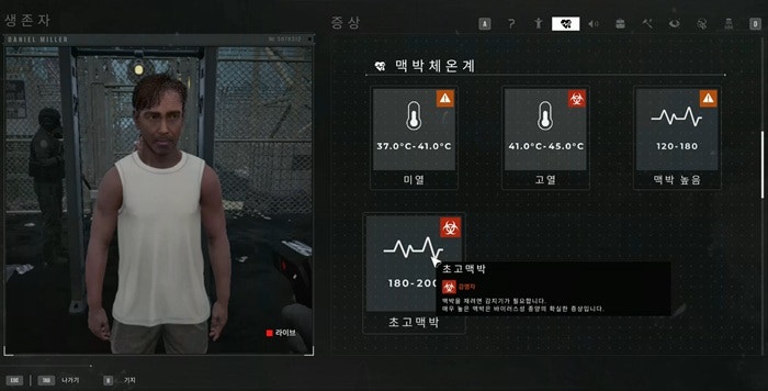 게임 초반부에는 감염 여부를 확인할 수 있는 수단이나 데이터가 많지 않습니다. 처음엔 오로지 손전등 하나로 좀비인지 아닌지를 판단해야 하지만, 점차 체온 및 심박 센서, 반응 속도를 확인하는 의료용 망치, 맨몸을 확인할 수 있는 스캐너 등의 추가적인 검사 도구가 주어지면서 확실하게 감염자와 비감염자를 구분 가능해지죠.