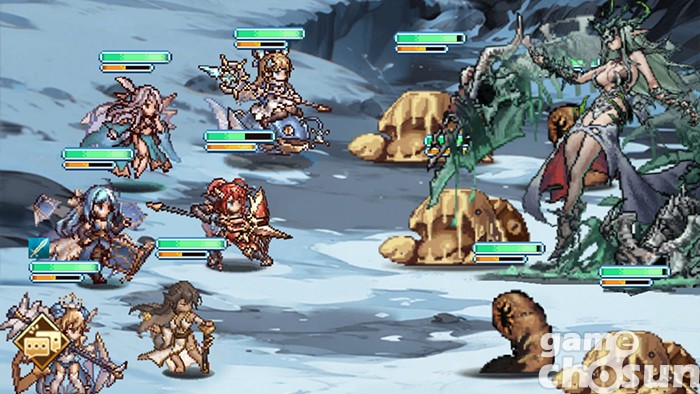 라이트코어 게임즈의 방치형 RPG '미송자의 노래'는 6명의 영웅을 조합해 나만의 조합을 만들 수 있다.