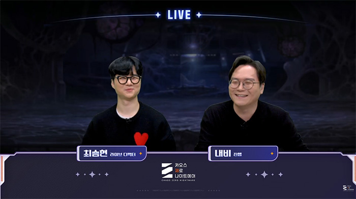 최승현 디렉터(이하 최승현): 안녕하세요. 카오스 제로 나이트메어에서 라이브 디렉터를 맡고 있는 최승현입니다. 말씀처럼 방송 외 다른 방식으로 퍼스트분들께 인사드리는 것은 처음이라 많이 떨리네요.
