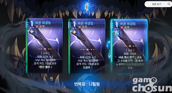 기자: 덱빌딩 면에서 개발진의 의도처럼 잘 굴러갔던 만족스러웠던 캐릭터, 만든 이 입장에서 뿌듯했던 캐릭터가 있을까요?