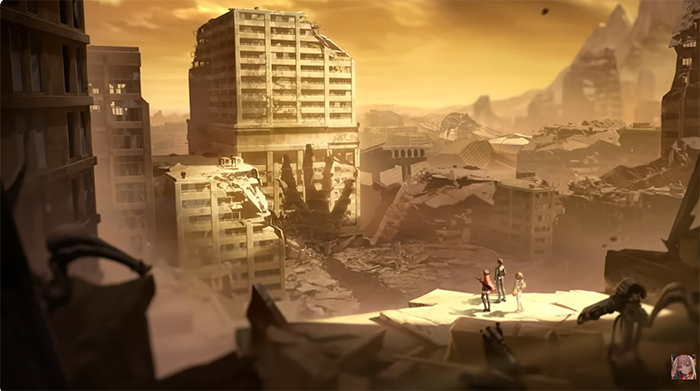 영상은 드디어 '지휘관' 일행이 퀸과의 전투가 휩쓸고 간 에덴에 도착하는 장면으로 시작합니다.
