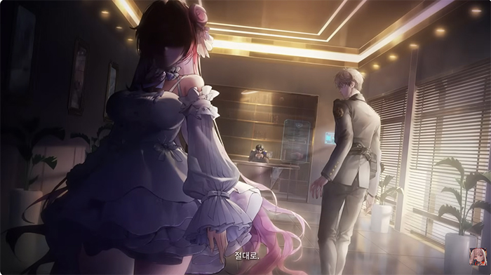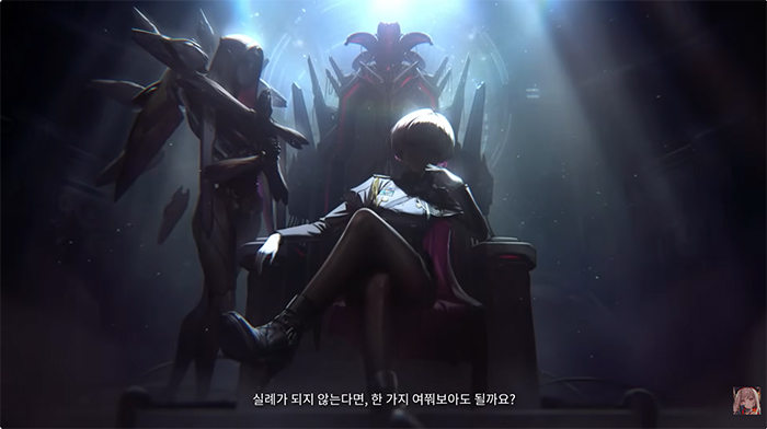 영상의 대미는 옥좌에 앉아 압도적인 포스를 뿜어내는 '퀸'의 모습이 장식했습니다. 특히, '퀸'의 곁에서 "실례가 되지 않는다면, 한 가지 여쭤보아도 될까요?"라고 묻는 새로운 인물은 니케 세계관 가장 큰 떡밥이자 흑막 중 하나인 'V.T.C'혹은 'D.E.E.P' 관련 인물일 가능성이 제기되며 긴장감을 고조시켰습니다. '퀸'의 잔인한 손속을 봤을 때 '퀸'을 설득하기 위해 떠난 '리버렐리오'의 처우 역시 그렇게 긍정적인 전망을 하기 힘들다는 예측도 나오고 있습니다.