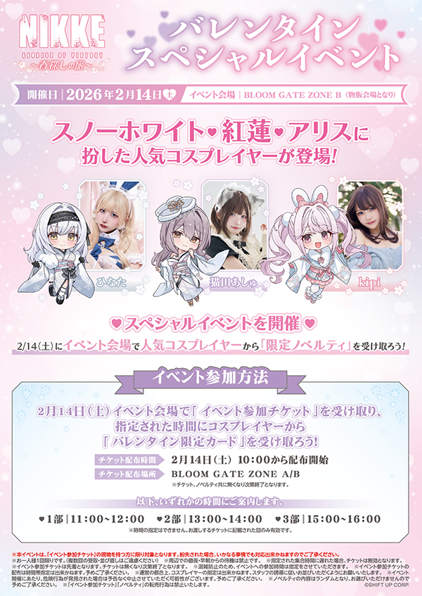 이번 콜라보레이션의 명칭은 '니케 봄 찾기 in 시부야 사쿠라 스테이지'로, 시부야 사쿠라 스테이지를 중심으로 도심 곳곳에서 다양한 프로그램이 운영된다. 2월 12일부터 2월 24일까지 약 13일간 진행될 예정으로, 특히, 오는 2월 14일에는 발렌타인 데이를 기념한 특별 현장 이벤트가 개최되어 팬들의 기대를 모으고 있다. 발렌타인 데이라는 상징적인 날짜에 맞춰 지휘관들에게 잊지 못할 추억을 선물하기 위한 전용 세션이 마련되며, 이를 통해 니케들과 더욱 가까이서 호흡하는 소통의 장이 펼쳐질 것으로 보인다.