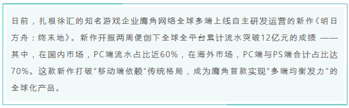엔드필드의 구체적인 성과를 요약한 상하이시 쉬후이구 위챗 포스트 요약문 = 쉬후이구 위챗 공식 계정 갈무리