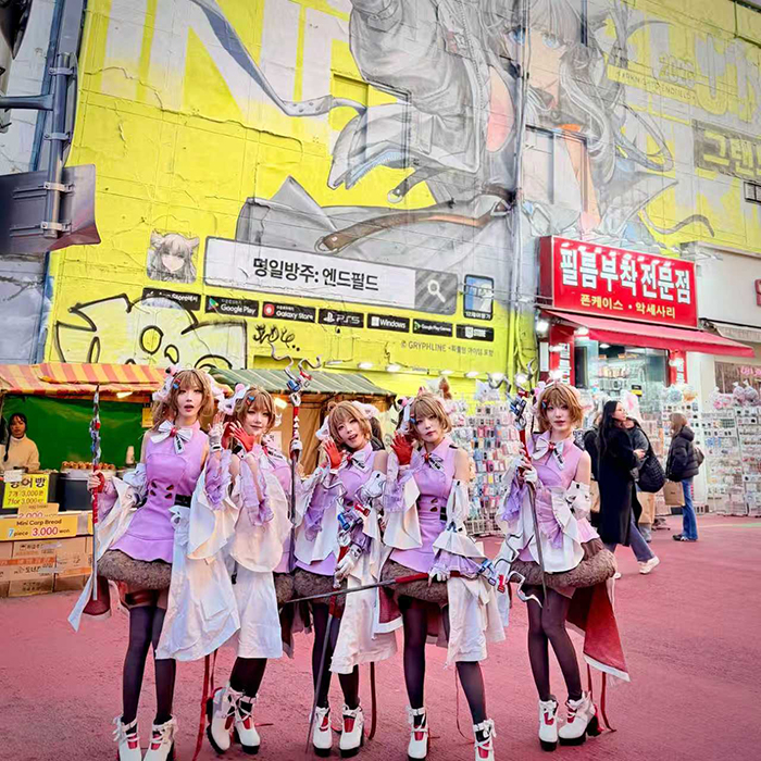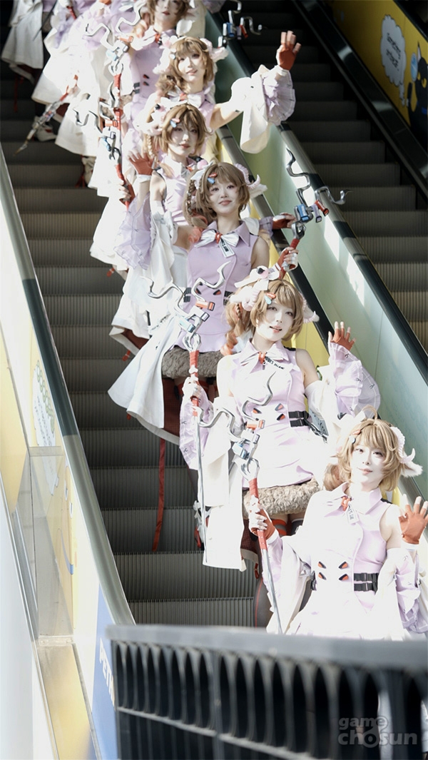아델리아로 분한 각 모델은 캐릭터 '아델리아'의 귀여운 외형과 지적이고 차분한 분위기를 살리기 위한 표정 연기, 포즈 하나하나에 정성을 담았으며, 엔드필드 특유의 기술적인 디자인의 의상과 소품을 완벽하게 재현해 내며 지나가던 시민들과 팬들의 시선을 단번에 사로잡았다.