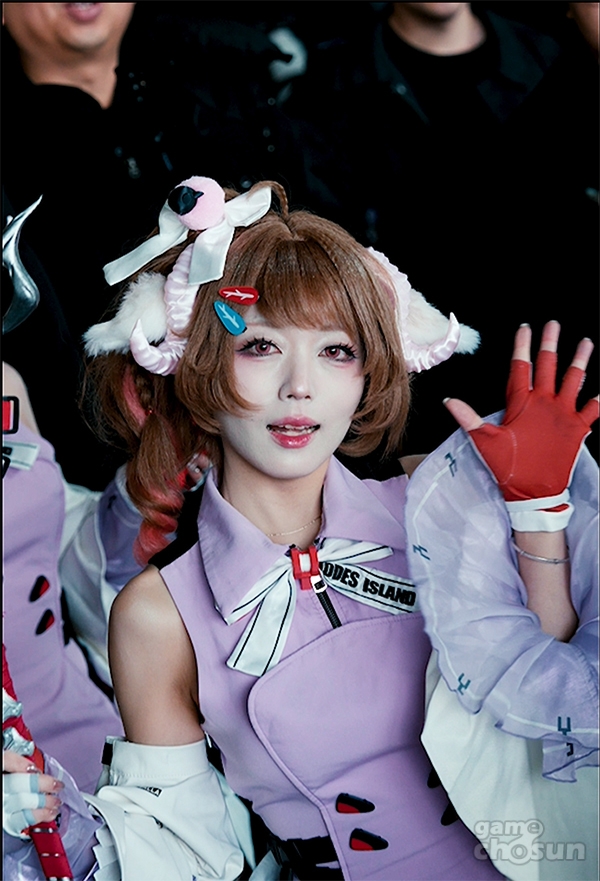 이날 코스프레 퍼레이드의 주역 캐릭터 '아델리아'는 '로도스 아일랜드' 소속으로, 전작에서도 인기가 많았던 '에이야퍄들라'의 리컨비너 오퍼레이터다. 게임 내에서 침식 대응책 마련의 기초가 된 초자연 및 지질 재해 연구 전문가이자 관리자의 조력자로 활약하며 큰 인기를 얻고 있는 캐릭터로, 정식 출시 기념 출석 체크 이벤트로 기본 명함과 전용 무기를 배포해 누구나 만날 수 있는 캐릭터이기도 하다.