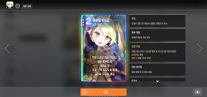 | 번뜩임 카드 | 창조와 파괴 | 방어 기반 피해 120%, 실드 80%, 치유 80%, 조율: 모든 효과 2배 | 1 |