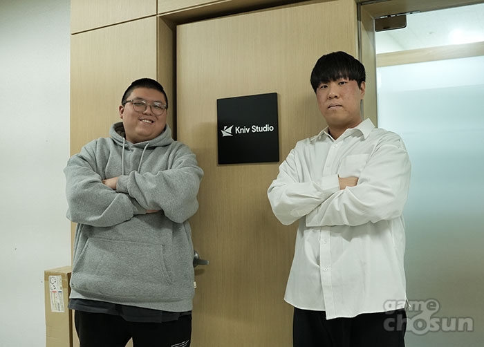 인디 개발사 '크니브 스튜디오'의 '홍종현 대표'와 '김준하 디렉터'. 이들의 만남부터가 한 편의 영화 같다. 훈련소 알동기로 만나, 누구나 한 번쯤 내뱉고 잊어버릴 "우리 나가서 게임이나 한번 만들까?"라는 실없는 약속, 그러니까 "언제 한 번 밥이나 먹자-"보다더 현실성 없어 보이는 약속을 3년이라는 시간과 맞바꿔 현실로 증명해 낸 이들이다.