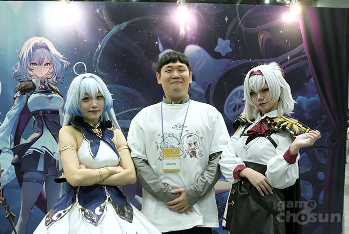 이번 부스에서 가장 큰 화제를 모은 것은 '니엔텀: 오퍼스 제로'의 핵심 캐릭터인 '리오라'와 '알레프'로 분한 전문 코스프레 모델들의 등장이었다. 은은한 하늘빛 머리카락이 돋보이는 '리오라'와 신비로운 분위기를 자아내는 '알레프' 코스프레 모델은 게임 속 모습을 완벽하게 재현했다.