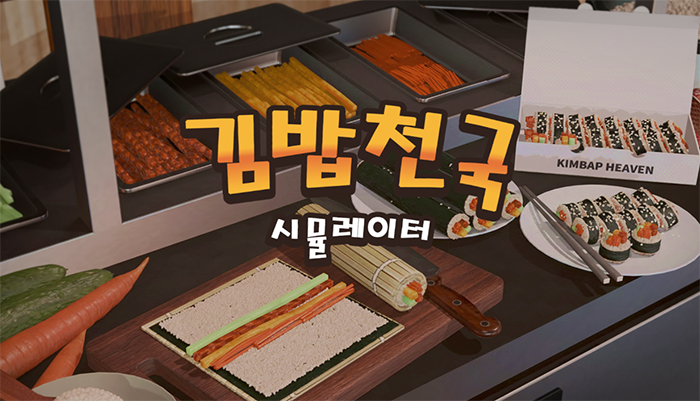 ‘김밥 천국 시뮬레이터’는 한국의 대중 식당을 배경으로 플레이어가 재료 구매부터 조리 서빙 매장 운영까지 식당 운영의 전 과정을 직접 수행하도록 설계되었다. 실제와 흡사한 식재료 손질과 조리 과정을 중심으로 구성되며 플레이를 거듭할수록 신규 식재료와 메뉴가 해금되는 구조를 갖췄다. 또한 주방 설비 업그레이드를 통해 주방 동선을 개선하고 작업 환경을 확장해 나가는 경영 시뮬레이션 특유의 재미를 담아냈다.