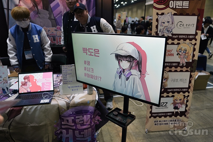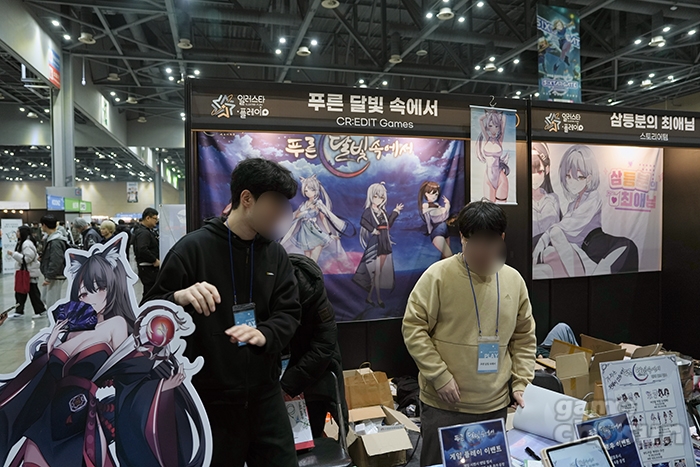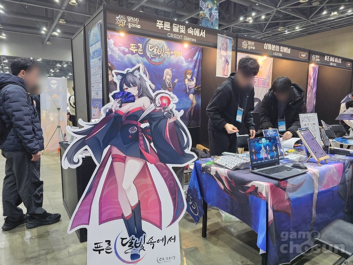 '크레딧게임즈'의 '푸른 달빛 속에서'는 몽환적이고 판타지적인 분위기를 강조한 대형 배경 일러스트가 일품이었다. 부스 앞에는 신비로운 여우 캐릭터의 대형 등신대가 설치되어 방문객들의 포토존 역할을 했으며, 스토브 인디 등을 통해 쌓아온 인지도를 바탕으로 많은 팬과의 교감을 이어갔다.