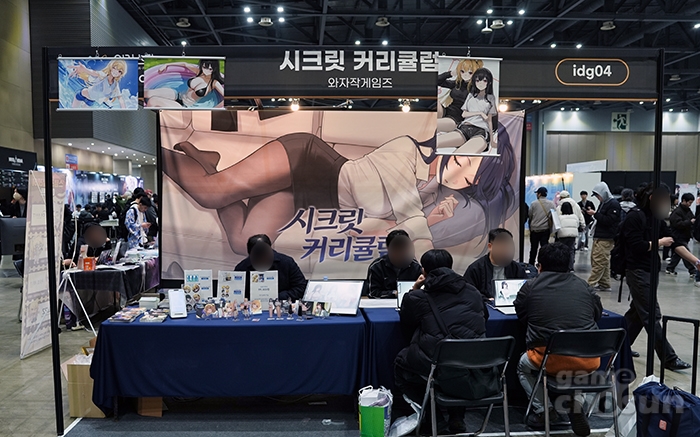 '와자작게임즈'의 '시크릿 커리큘럼'은 학교와 사무실 공간이 섞인 듯한 묘한 긴장감의 메인 비주얼로 이목을 집중시켰다. 부스 책상 위에는 아크릴 스탠드, 캔 배지, 마우스 패드, 캐릭터 카드 등 유저들의 수집 욕구를 자극하는 다채로운 실물 굿즈들이 정갈하게 전시되어 팬들의 지갑을 열게 했다.