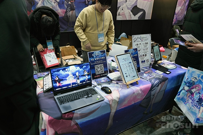 이번 일러스타 플레이의 백미 중 하나는 4개 인디 개발사가 뭉친 '비주얼 노벨 연합 부스'였다. 이들은 각기 다른 매력의 타이틀을 선보이면서도 '스탬프 릴레이 이벤트'라는 공동 마케팅을 통해 유저들에게 통합적인 즐거움을 선사했다. 4개의 부스를 모두 방문하여 스탬프를 모은 유저들에게는 특별 제작된 특전 엽서 세트가 증정되어 큰 호응을 얻었다.