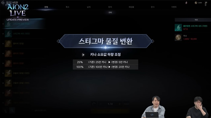 스티그마 물질 변환 시 소모되는 키나값을 하향 조정한다. 스티그마 샤드 물질 변환 시 필요로 하는 키나는 기존 대비 80% 하향되며, 100% 획득 스티그마 샤드 물질 변환식의 경우 기존 100만 키나에서 20만 키나로 가능해진다. 기존에 사용한 키나는 추후 소급해 반환할 예정이다.
