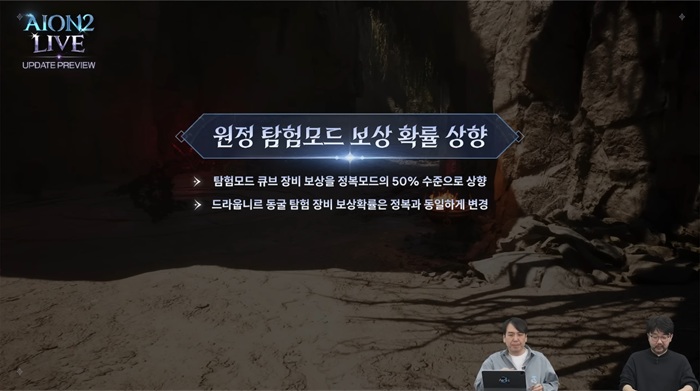 원정 탐험 모드의 보상 확률을 상향 조정한다. 탐험의 큐브 장비 보상을 정복 모드의 50% 수준으로 상향하며, 드라웁니르 탐험의 장비 보상 확률은 정복과 동일하게 변경한다.