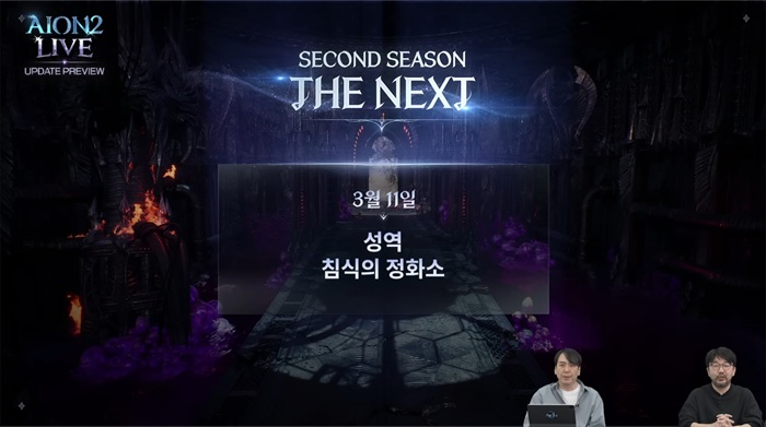 3월 11일 PvE 엔드 콘텐츠 '성역'의 신규 던전 '침식의 정화소'가 업데이트될 예정이라는 점도 언급했다. 김남준 PD는 "신규 성역 던전은 상당한 난이도를 가질 것"이라고 밝히기도 했다.