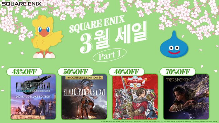 이번 세일에서는 '파이널 판타지 16 컴플리트 에디션'과 '드래곤 퀘스트 10 다섯 종족의 각성 오프라인' 등 스퀘어 에닉스를 대표하는 대작들이 대거 포함되었다.