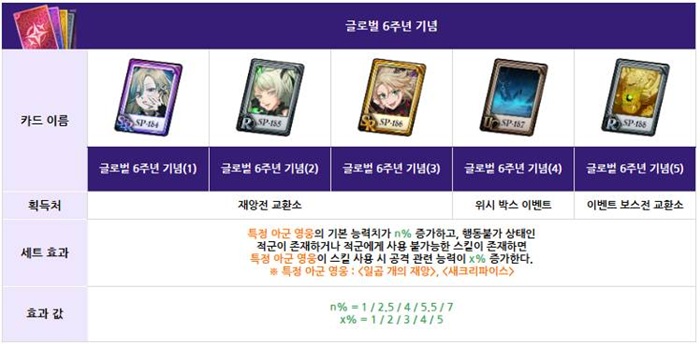 영웅의 서 5권 - 글로벌 6주년도 추가되며, 목표를 완수할 경우 다양한 영웅 육성 아이템을 지원받을 수 있다.