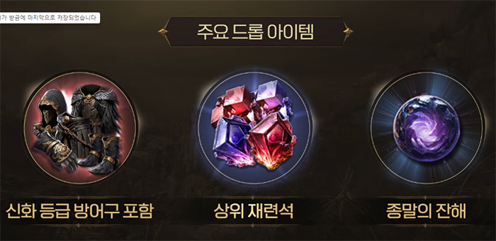 특히 최상위 지역인 잿더미 황야에서 매주 일요일 등장하는 보스 몬스터 '자르하갈'은 처치 시 신화 등급 장비를 100% 확률로 드롭하여 이용자들의 도전 욕구를 자극한다.
