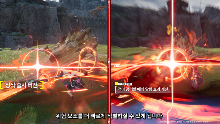 전투와 관련해서는 직관성과 시인성 위주의 개선이 진행된다. 조금 더 명확하게 적의 공격을 볼 수 있도록 알림 효과가 개선될 뿐만 아니라 인스턴스 던전에 입장하는 일부 고난도 프로토콜 공간은 플레이 도중 캐릭터의 체력이 소모되거나 사망한 것을 복구하기 위해 매번 워프 포인트로 되돌아가는 번거로운 과정을 거칠 필요가 없어진다.