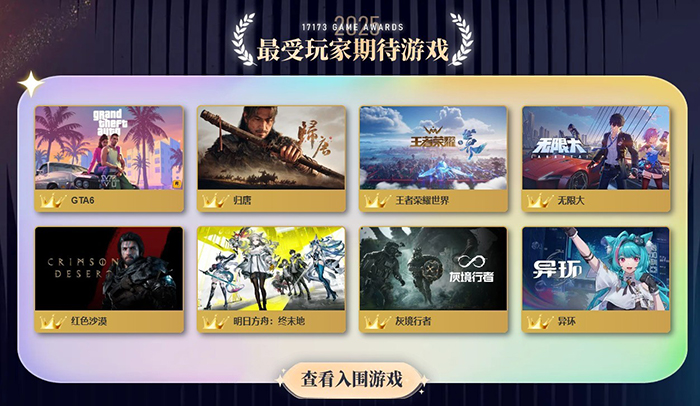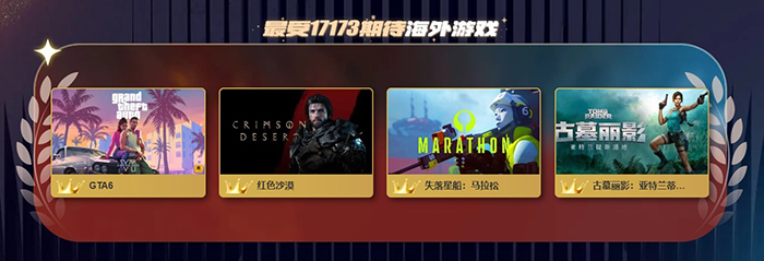 이용자가 뽑은 가장 기대되는 게임 부문에서 해외 게임으로는 붉은사막과 GTA 6만 선정됐으며, 나머지 선정작은 중국 게임들로 구성됐다. ‘17173 에디터 선정 글로벌 기대작’ 부문에는 GTA6, 마라톤, 툼 레이더: 레거시 오브 아틀란티스 등 글로벌 주요 기대작들이 함께 포함됐다.
