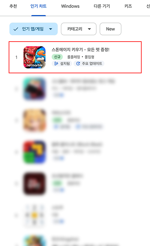 넷마블의 신작 방치형 RPG '스톤에이지 키우기'가 4일, 구글 플레이 스토어 인기 순위 1위를 달성하며 원작 IP의 강력한 저력을 입증했다. 또, 같은 날 애플 앱스토어 게임 카테고리에서도 인기 1위, 매출 2위에 오르며 차트 정상에 올랐다.