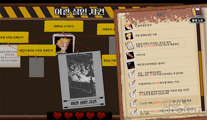 플레이엑스포와 BIC 등 국내외 주요 게임쇼에서 '직접 발로 뛰는 탐정'이라는 독특한 콘셉트로 눈도장을 찍었던 이 작품은, 기획부터 개발, 작곡, 번역에 이르기까지 모두 직접 자신의 손으로 빚어낸 1인 개발자의 장인 정신이 깃든 놀라운 완성도를 보여줍니다.