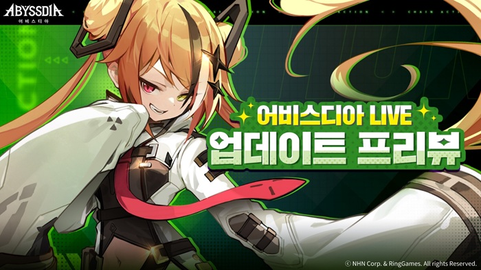 [자료제공 = NHN] 엔에이치엔(대표 정우진, 이하 NHN)은 링게임즈가 개발하고 자사가 서비스하는 수집형 RPG ‘어비스디아(Abyssdia)’의 첫 업데이트를 앞두고, 13일 저녁 8시에 업데이트 내용을 소개하며 이용자와 소통하는 프리뷰 라이브 방송을 진행한다고 밝혔다.