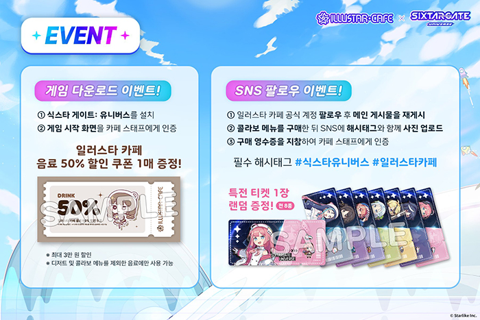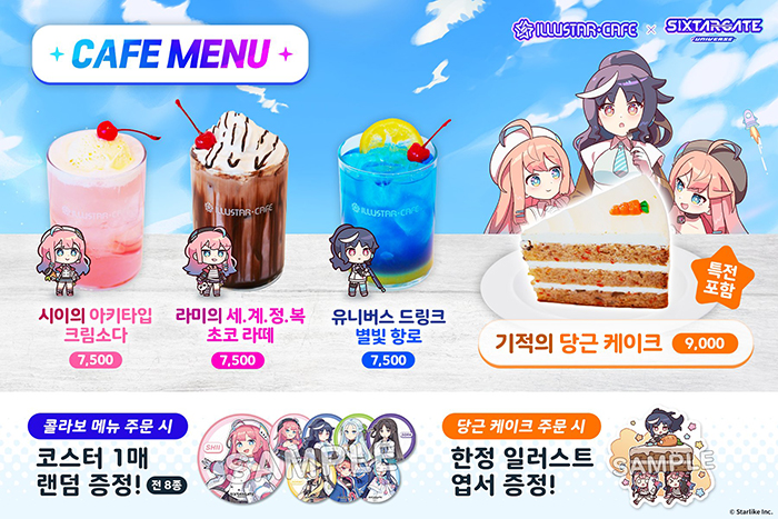 스타라이크가 운영하는 일러스타 카페 전 지점에 탐사선 아우스플루크가 정식 상륙한다는 소식이다. 이번 행사는 스타라이크가 직접 개발하고 서비스하는 서브컬처 수집형 리듬 RPG 신작 '식스타 게이트: 유니버스'를 테마로 하여 오는 3월 17일부터 4월 19일까지 약 한 달간 진행될 예정이다.