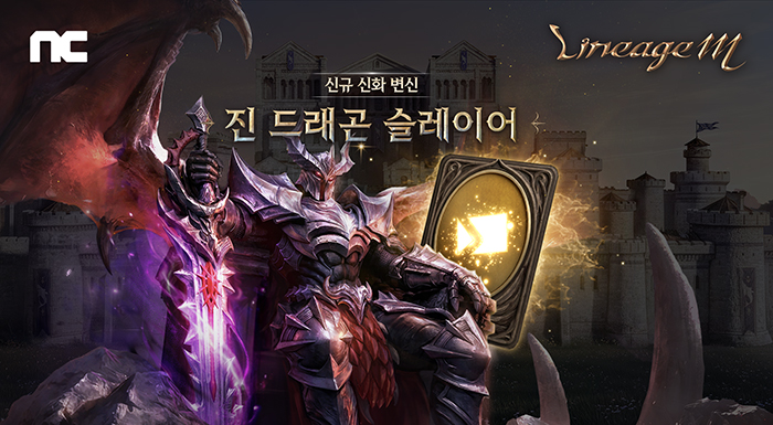 리니지M 3월 18일 신규 신화 변신 '진 드래곤 슬레이어'를 추가했다. '진 드래곤 슬레이어' 변신 시 ▲공격 속도 180% ▲이동 속도 15% ▲시전 속도 20% ▲PVE 대미지 증가 3% ▲PVE 대미지 감소 3% ▲드래곤 추가 대미지 +40 ▲차징 시간 감소 25% ▲발동:슬레이어 퓨리 2%의 능력치를 획득한다. '발동:슬레이어 퓨리'는 신화 변신 최초의 광역 스킬이다.