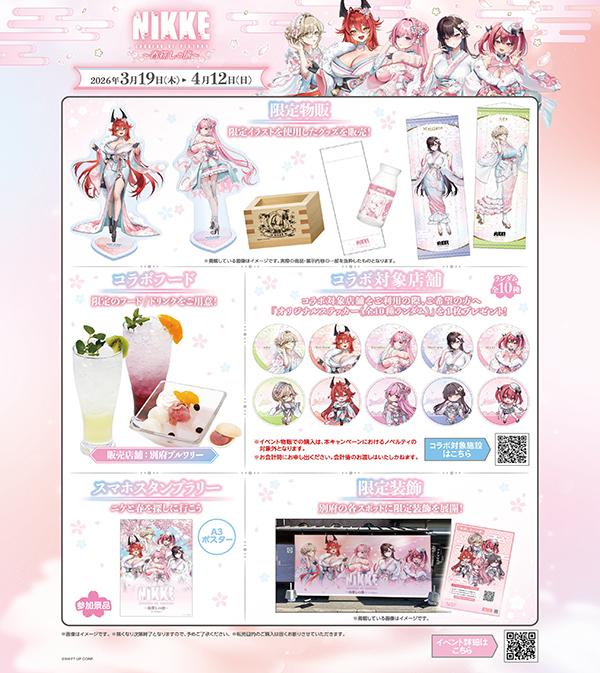 이번 행사는 3월 19일부터 4월 12일까지 벳푸 전역에서 진행되며, 니케 캐릭터들과 함께 봄나들이를 즐기는 듯한 다채로운 콘텐츠를 선보입니다.