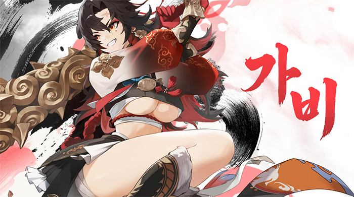 '가비'는 한국 전통 설화 속 도깨비를 현대적인 감각으로 재해석한 외형이 돋보이는 캐릭터다. 검은 머리카락 사이로 보이는 붉은색 포인트 컬러와 오른쪽 이마에 솟아난 외뿔이 강렬한 인상을 준다. 특히 거대한 도깨비 방망이를 주무기로 사용하며, 압도적인 무력을 행사하는 것이 특징이다. 또, 과감한 의상 역시도 캐릭터의 특징을 잘 말해준다.